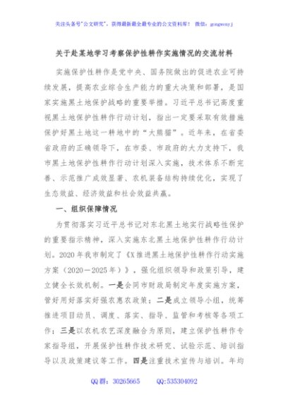 / 关于赴某地学习考察保护性耕作实施情况的交流材料