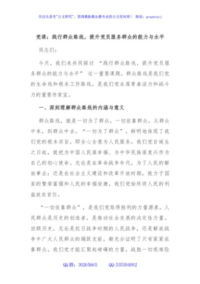 / 党课:践行群众路线,提升党员服务群众的能力与水平