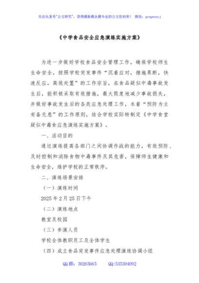 / 中学食品安全应急演练实施方案
