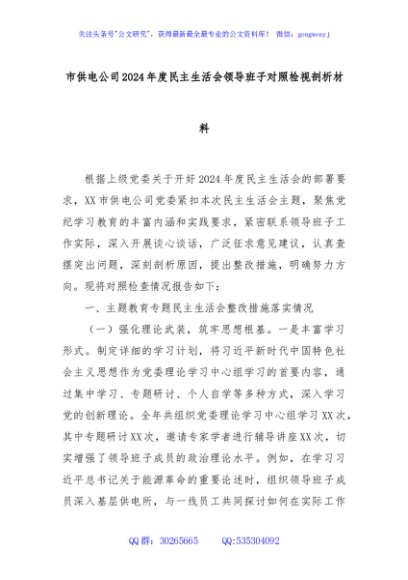 / 市供电公司2024年度民主生活会领导班子对照检视剖析材料