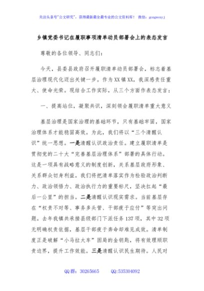 / 乡镇党委书记在履职事项清单动员部署会上的表态发言