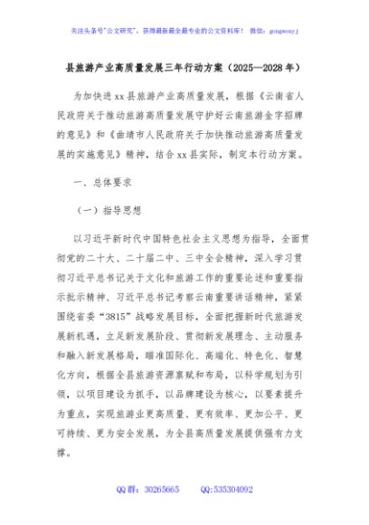 / 县旅游产业高质量发展三年行动方案(2025—2028年)