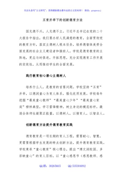 / 五育并举下的创新德育方法