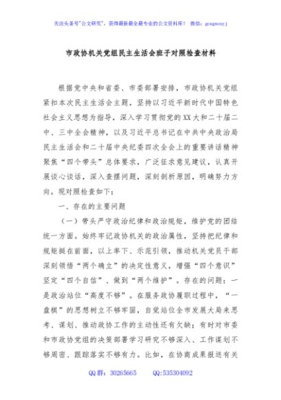 / 市政协机关党组民主生活会班子对照检查材料