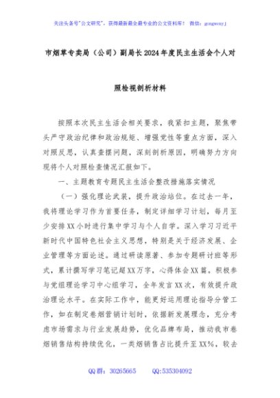/ 市烟草专卖局(公司)副局长2024年度民主生活会个人对照检视剖析材料