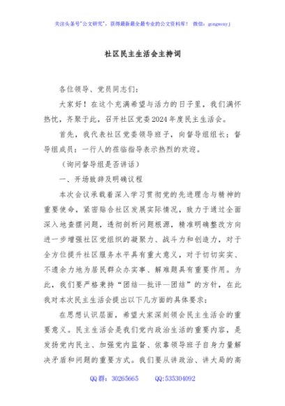 / 社区民主生活会主持词