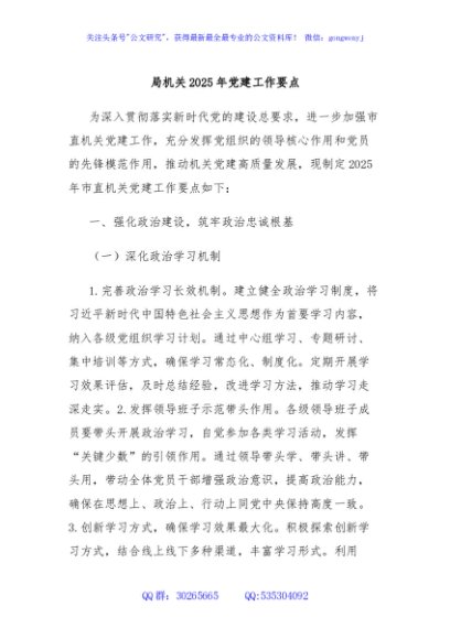 / 局机关2025年党建工作要点
