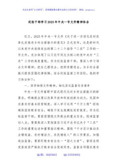 / 纪检干部学习2025年中央一号文件精神体会