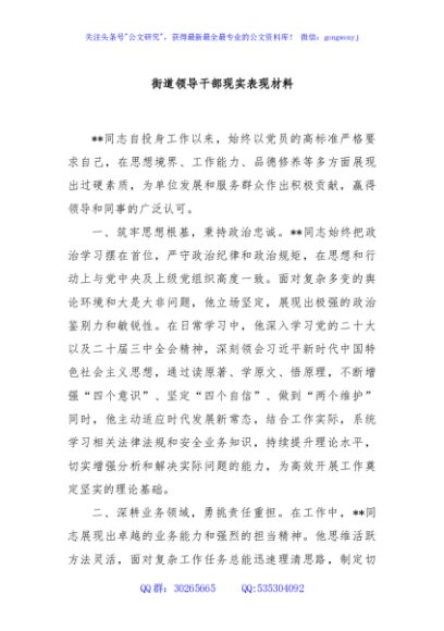 / 街道领导干部现实表现材料