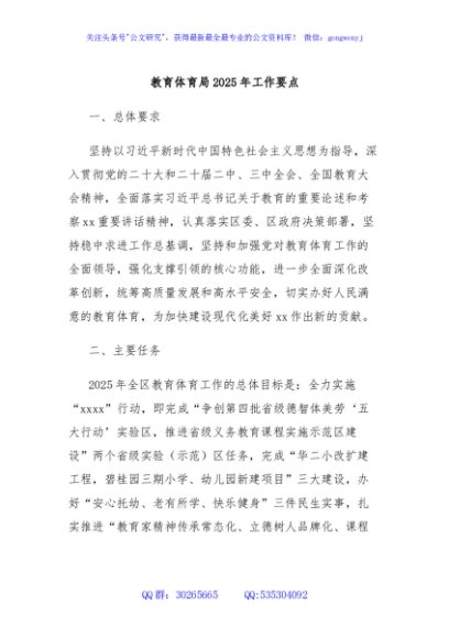 / 教育体育局2025年工作要点