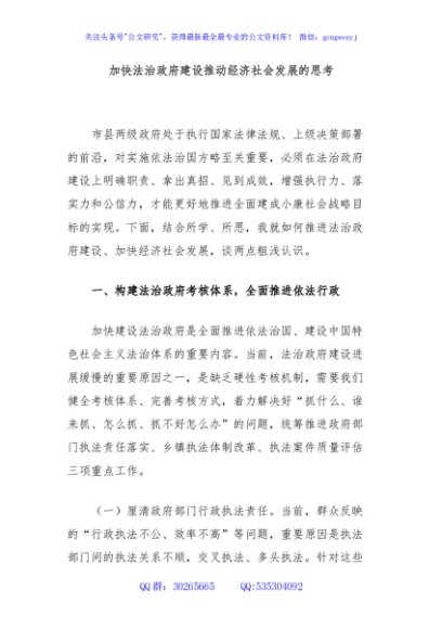 / 加快法治政府建设推动经济社会发展的思考
