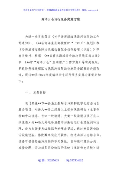 / 海洋云仓运行服务实施方案