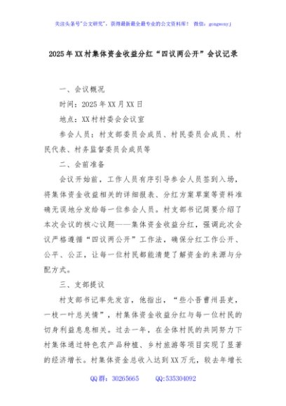/ 2025年XX村集体资金收益分红“四议两公开”会议记录
