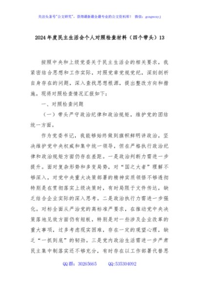 / 2024年度民主生活会个人对照检查材料(四个带头)13