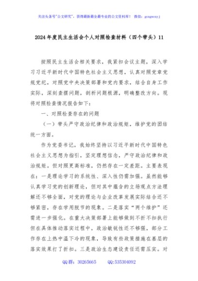 / 2024年度民主生活会个人对照检查材料(四个带头)11