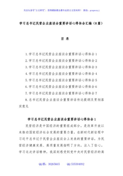 / (8篇)学习总书记民营企业座谈会重要讲话心得体会汇编