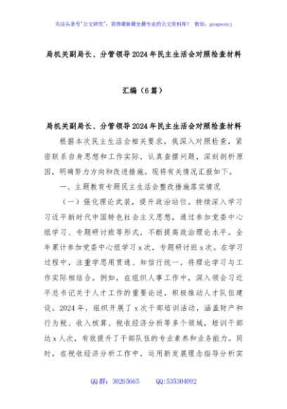 / (6篇)局机关副局长、分管领导2024年民主生活会对照检查材料汇编