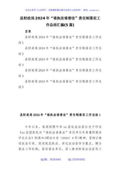 / (5篇)县财政局2024年“谁执法谁普法”责任制落实工作总结汇编