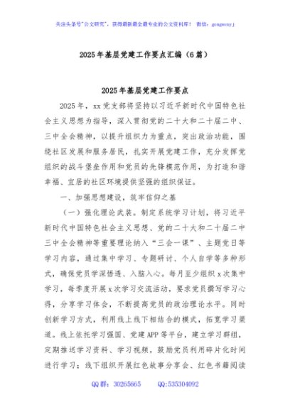 / (6篇)2025年基层党建工作要点汇编