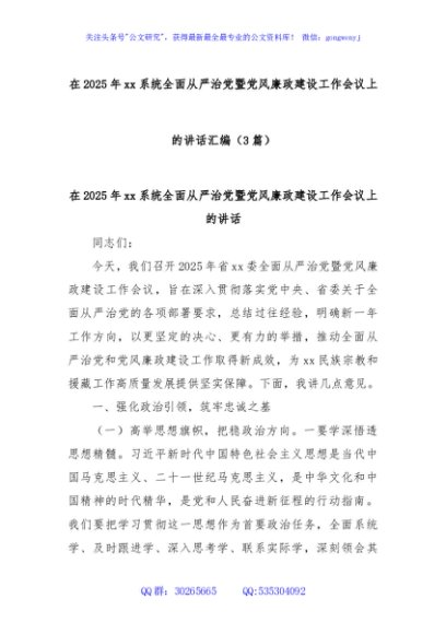 / (3篇)在2025年xx系统全面从严治党暨党风廉政建设工作会议上的讲话汇编