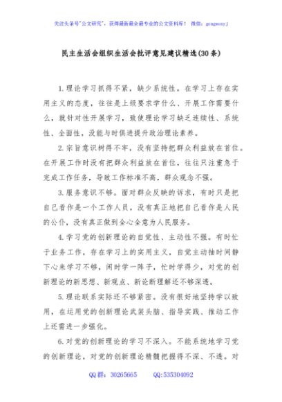 / (30条)民主生活会组织生活会批评意见建议精选