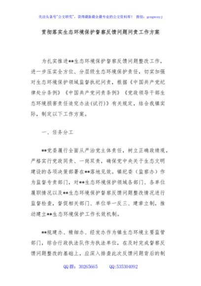 / 贯彻落实生态环境保护督察反馈问题问责工作方案