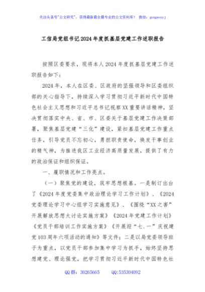 / 工信局党组书记2024年度抓基层党建工作述职报告