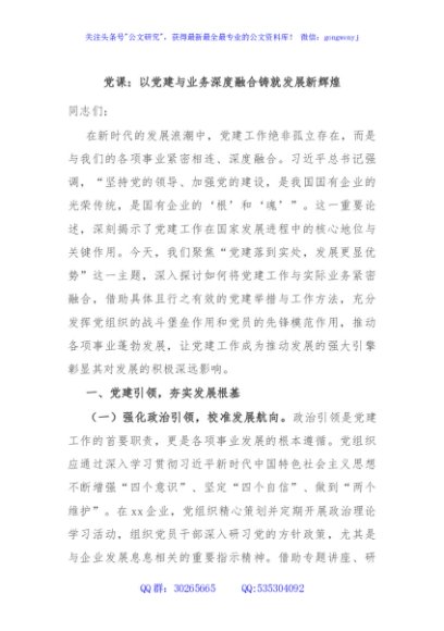 / 党课:以党建与业务深度融合铸就发展新辉煌