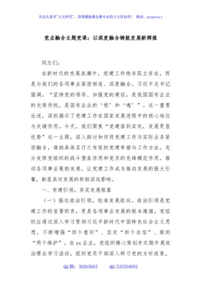 / 党业融合主题党课:以深度融合铸就发展新辉煌