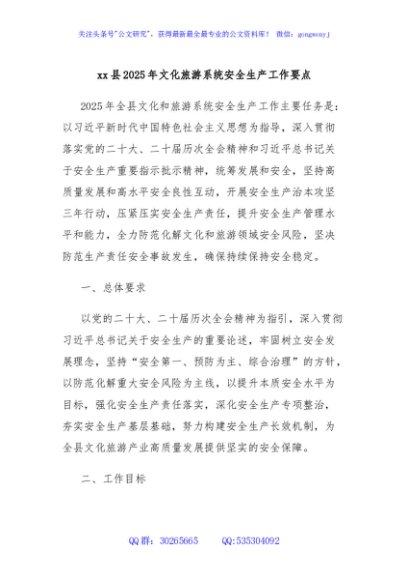 / xx县2025年文化旅游系统安全生产工作要点