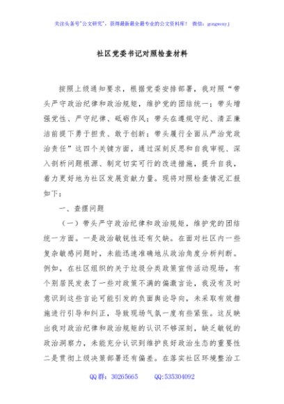 / 社区党委书记对照检查材料