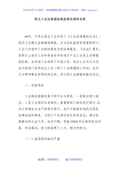 / 深化工会法律援助制度建设调研材料