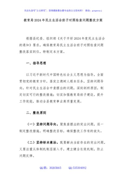 / 教育局2024年民主生活会班子对照检查问题整改方案