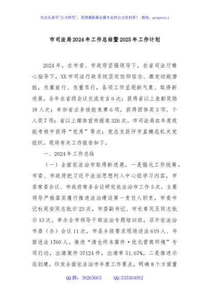 / 市司法局2024年工作总结暨2025年工作计划