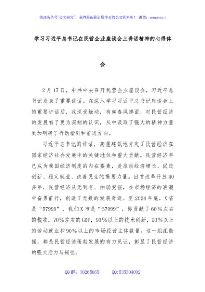 / 学习习总书记在民营企业座谈会上讲话精神的心得体会
