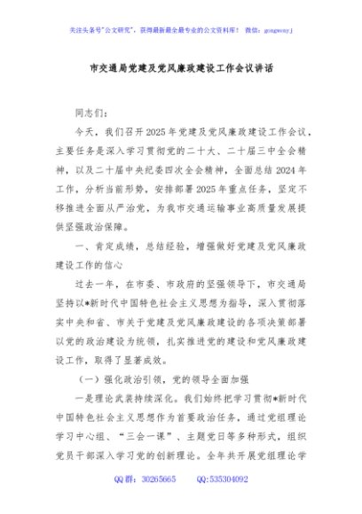 / 市交通局党建及党风廉政建设工作会议讲话