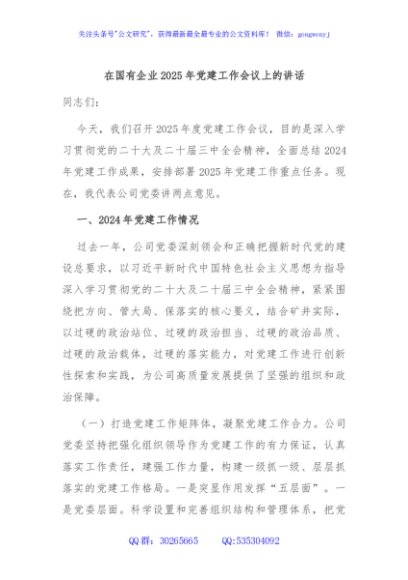 / 在国有企业2025年党建工作会议上的讲话