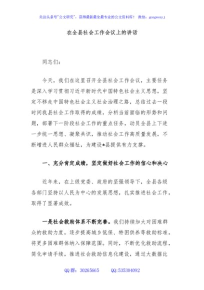 / 在全县社会工作会议上的讲话