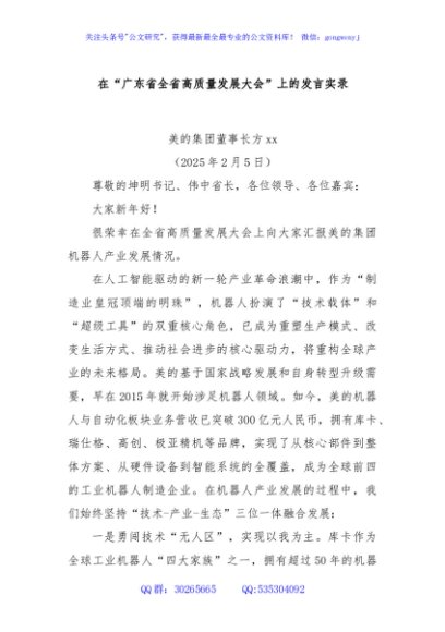 / 在“广东省全省高质量发展大会”上的发言实录