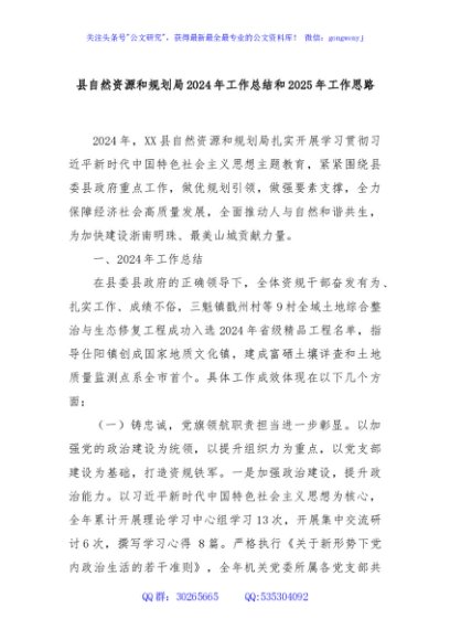 / 县自然资源和规划局2024年工作总结和2025年工作思路