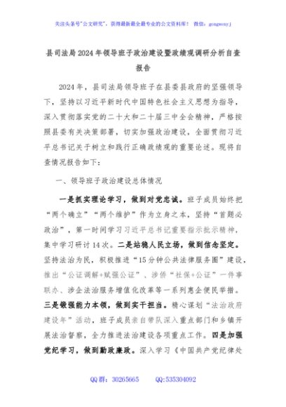 / 县司法局2024年领导班子政治建设暨政绩观调研分析自查报告