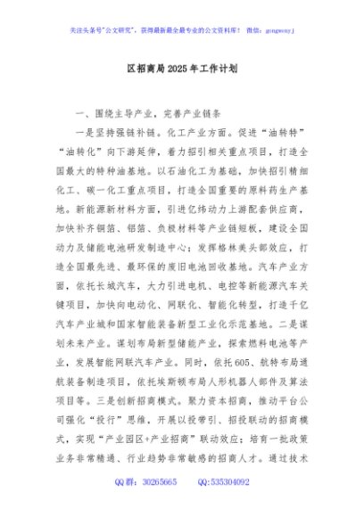 / 区招商局2025年工作计划