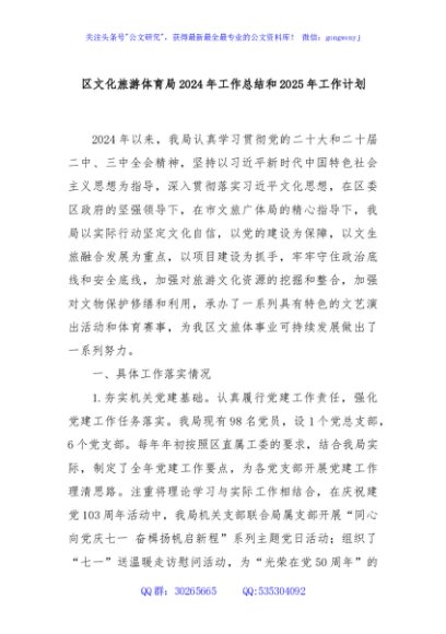 / 区文化旅游体育局2024年工作总结和2025年工作计划