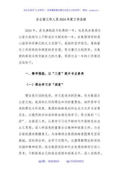 / 办公室工作人员2024年度工作总结