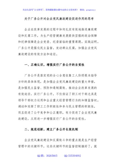 / 关于厂务公开对企业党风廉政建设促进作用的思考