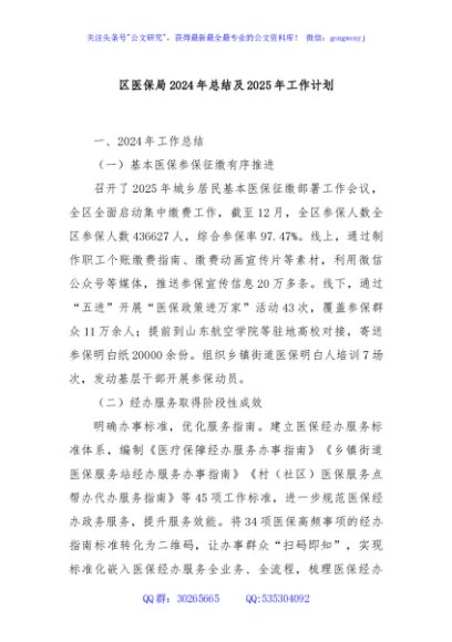 / 区医保局2024年总结及2025年工作计划