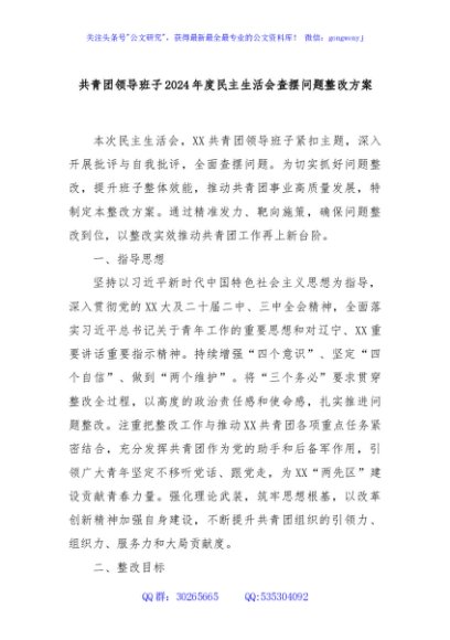/ 共青团领导班子2024年度民主生活会查摆问题整改方案
