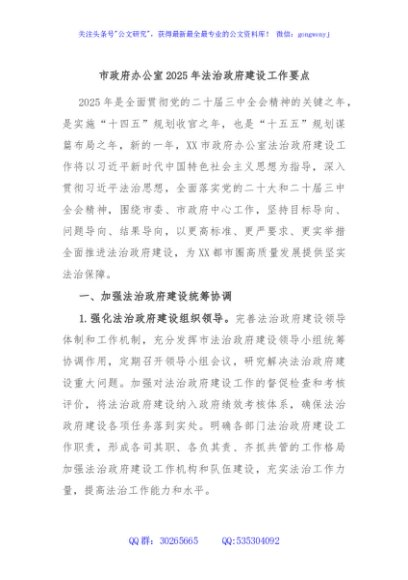 / 市政府办公室2025年法治政府建设工作要点