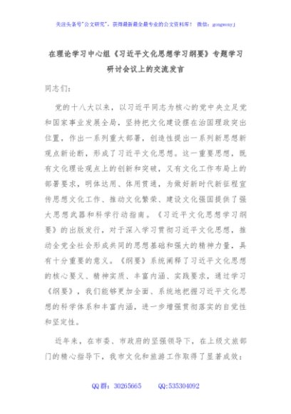 / 在理论学习中心组《习近平文化思想学习纲要》专题学习研讨会议上的交流发言