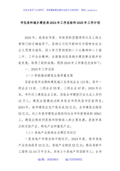 / 市住房和城乡建设局2024年工作总结和2025年工作计划